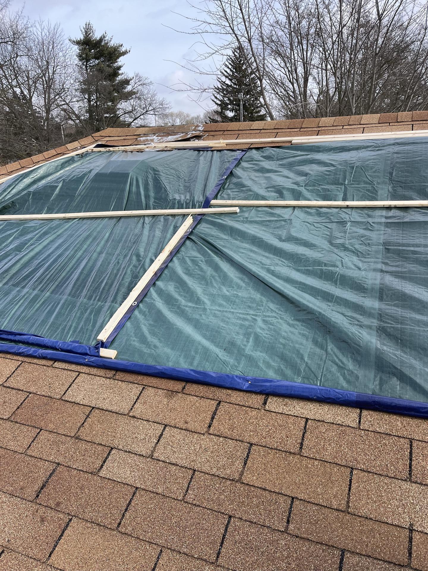Our team promptly responded to the wind damage affecting multiple elevations of the roof and the exterior. We performed emergency services, including securing a protective tarp over the damaged roof sections to prevent further water intrusion and mitigate additional structural damage. This temporary repair addressed immediate concerns related to the compromised roof and exterior integrity, awaiting comprehensive restoration.