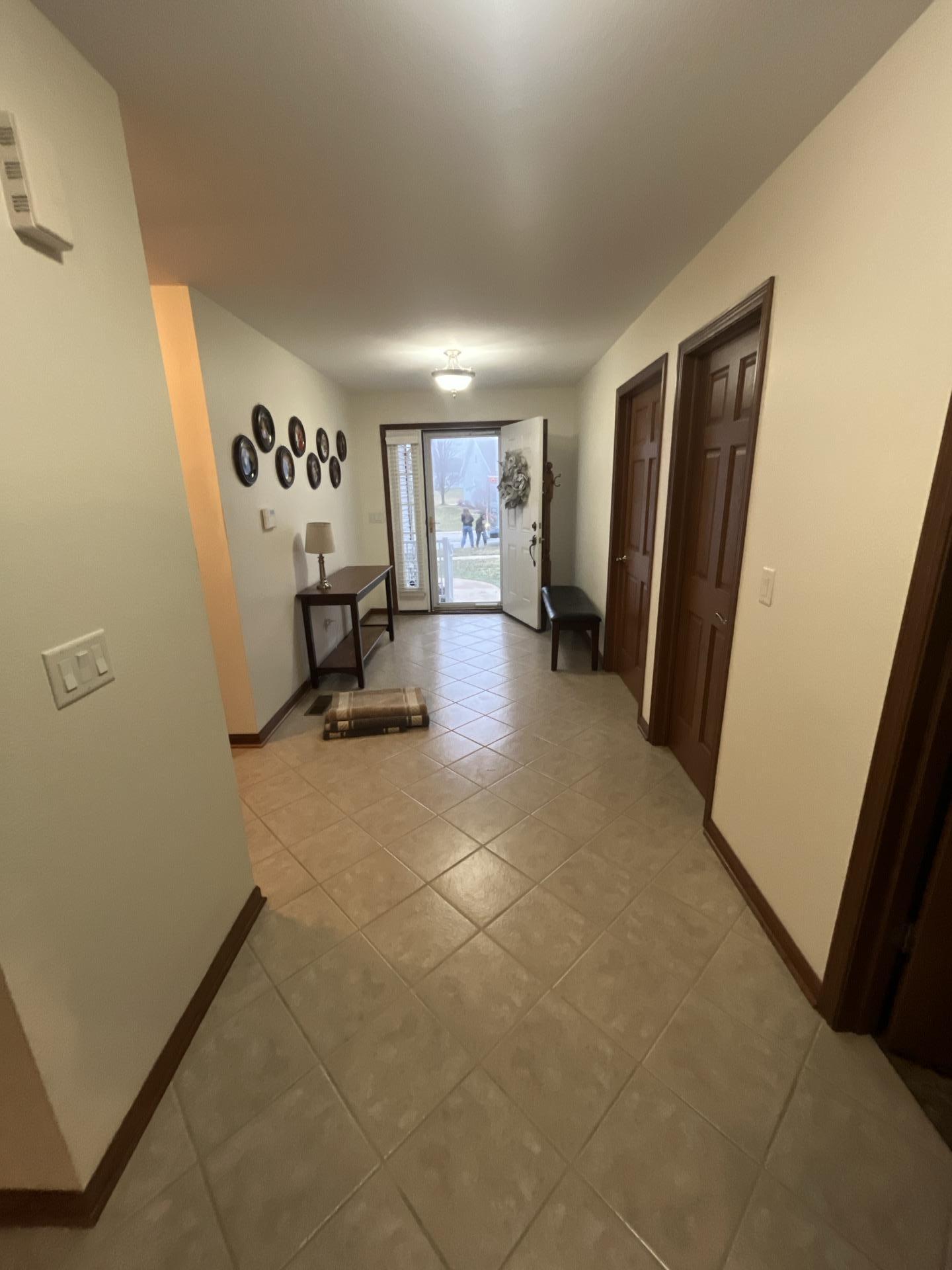 Restored entry way with tiled floor and clean walls after smoke damage remediation by Cousin O' Restoration.