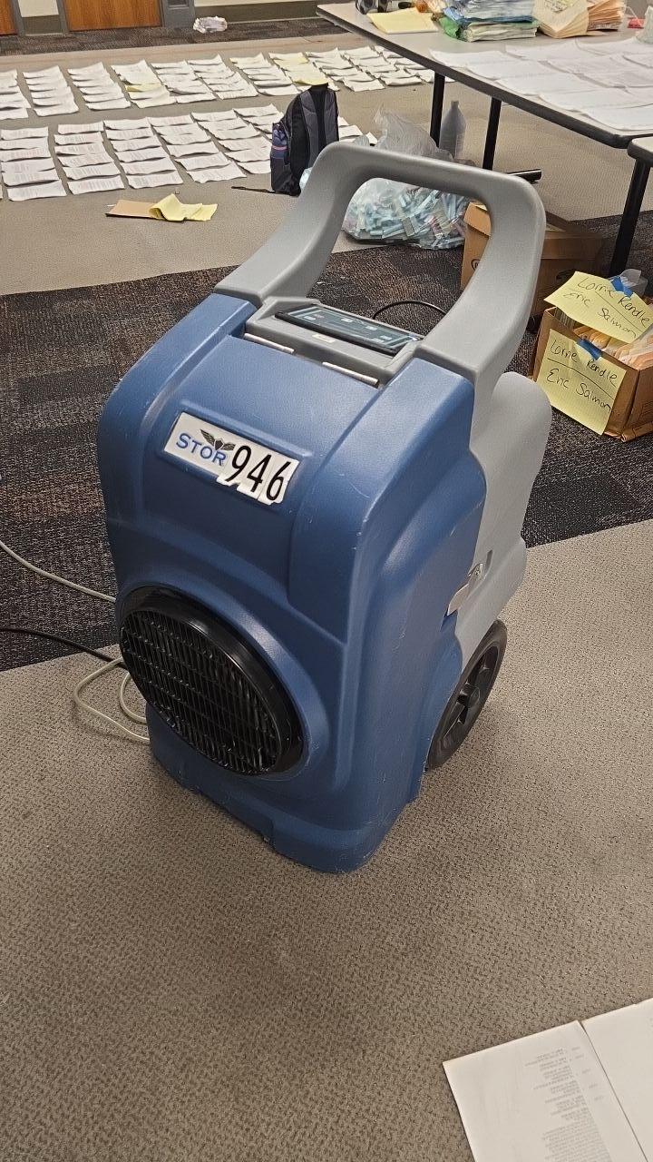 Cousino Restoration provided comprehensive water damage restoration services. This involved the meticulous process of drying water-damaged documents, carefully spreading them out to ensure thorough air circulation. Professional-grade equipment, including a commercial dehumidifier (STO_R 946), was strategically deployed to rapidly extract moisture from the affected areas and contents. The office space was then thoroughly cleaned, sanitized, and restored to its pre-damage condition, ensuring all documents were recovered and the environment was safe and functional.