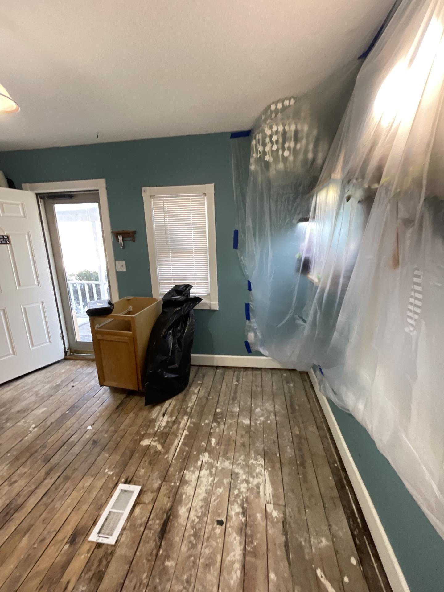 Our team provided comprehensive water damage restoration services. This included careful demolition and removal of the severely water-damaged hardwood flooring and compromised sections of the subfloor and drywall. Specialized drying equipment, such as air movers and dehumidifiers, was strategically placed to thoroughly dry all affected structural elements. We also implemented containment measures using plastic sheeting to protect unaffected areas and control the drying environment. The process addressed both visible damage and hidden moisture to prevent mold growth and ensure complete remediation.
