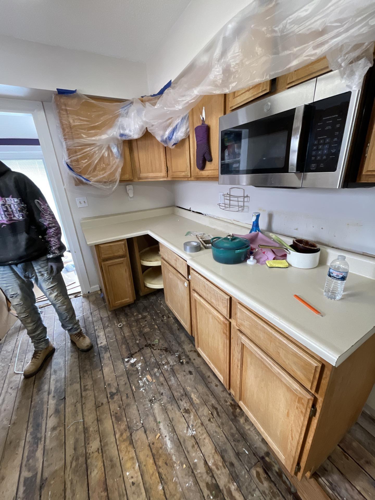 The customer experienced significant water damage to their kitchen, affecting the wooden flooring, subfloor, and potentially lower wall sections. The damage was extensive, necessitating professional restoration services to mitigate further issues and prepare for reconstruction.