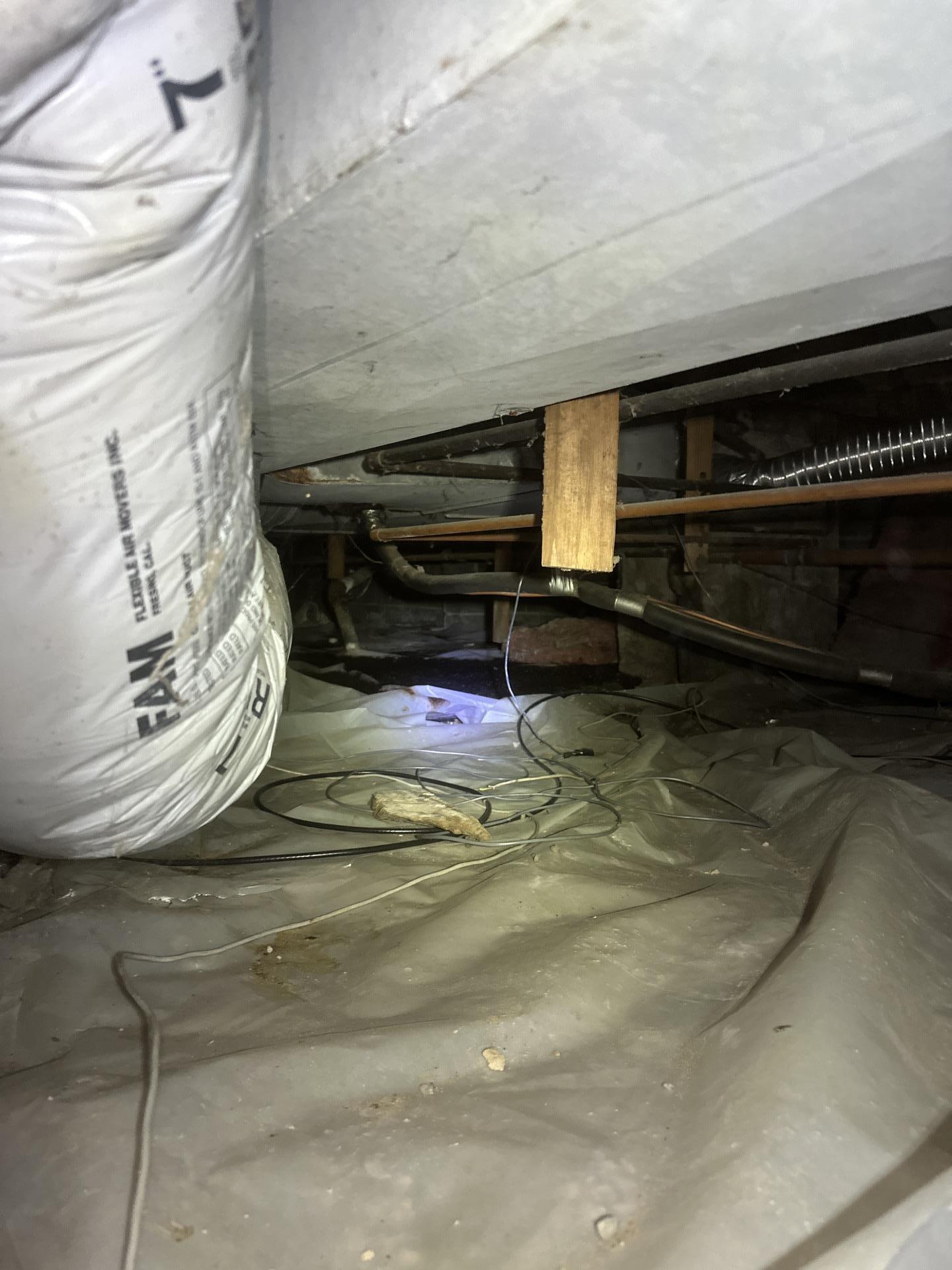 The customer had an issue with an accumulation of solids in their crawl space beneath existing plastic sheeting, initially suspected to be a liquid waste problem.