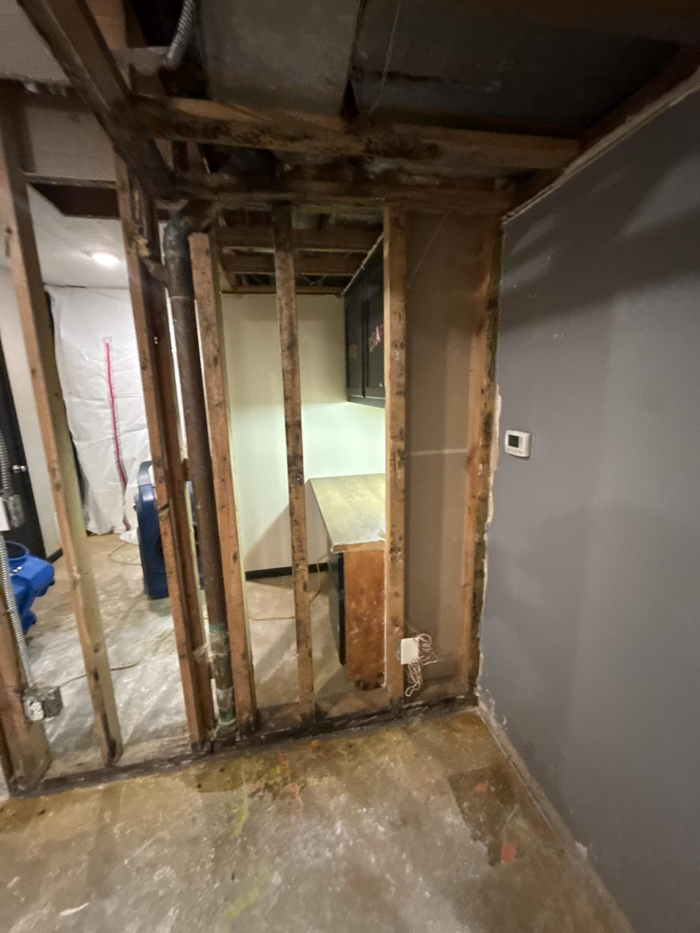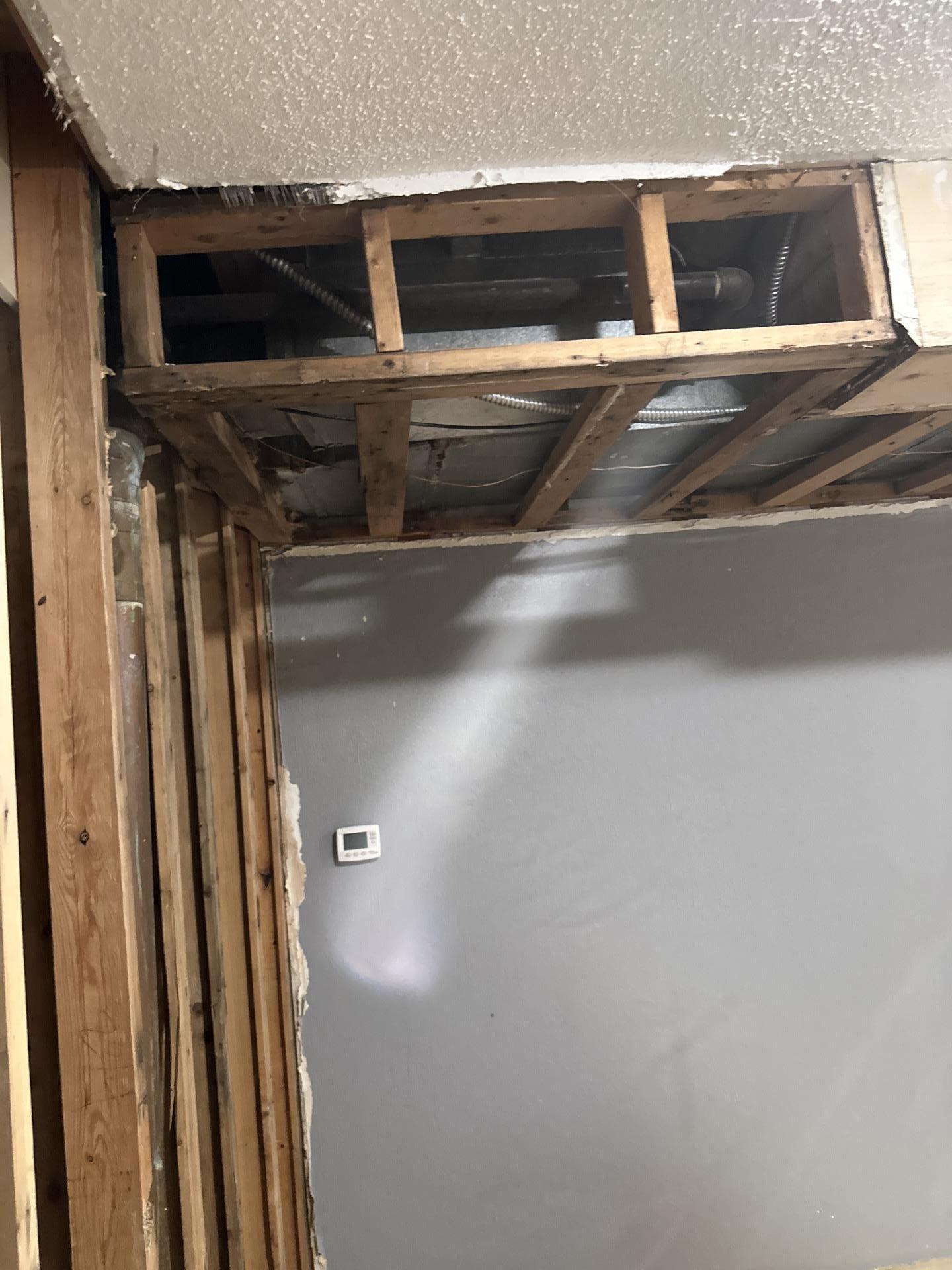 Our team executed a comprehensive water damage restoration project which included the removal of damaged drywall and debris, thorough drying and dehumidification of affected areas, treatment to prevent future mold growth, and meticulous repair of all compromised walls and ceiling areas. All damaged materials were replaced, fully restoring the space to a clean, dry, and structurally sound condition.