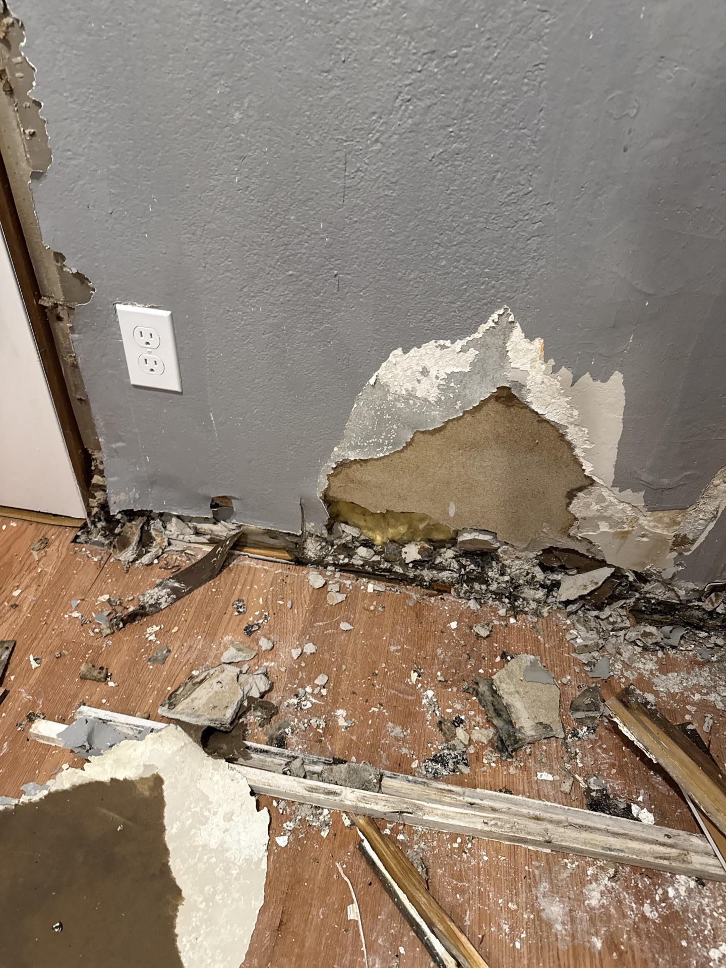 The customer experienced significant water damage resulting in extensive drywall deterioration, moisture intrusion, and structural exposure in their property.