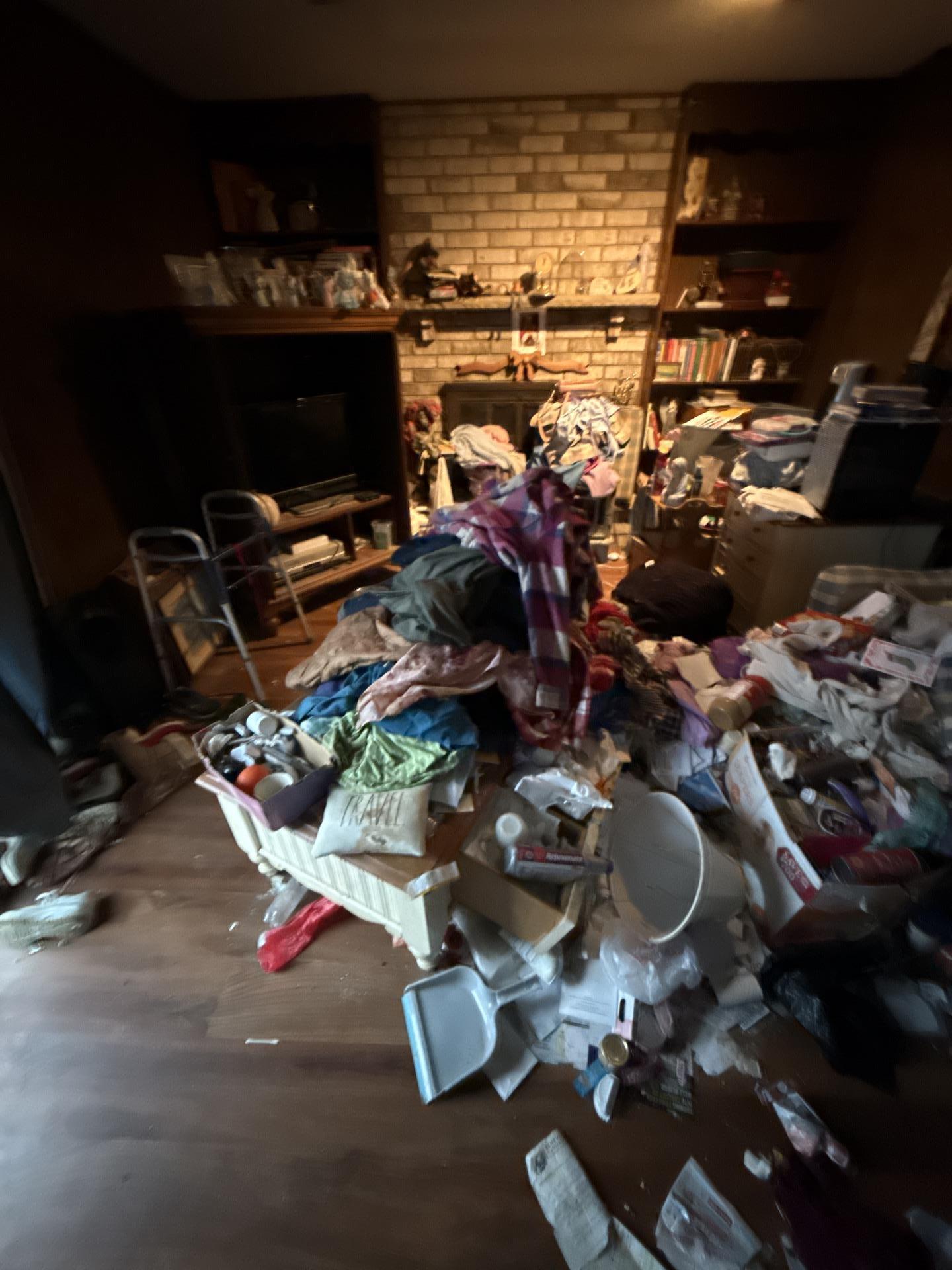 The property was in a severe state of hoarding, with large volumes of accumulated household waste, debris, and unwanted items making the space unlivable and disorganized.