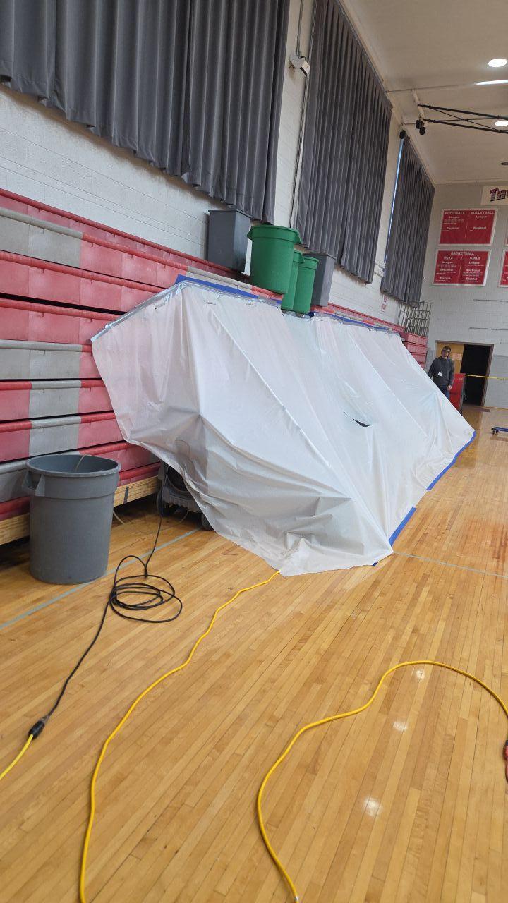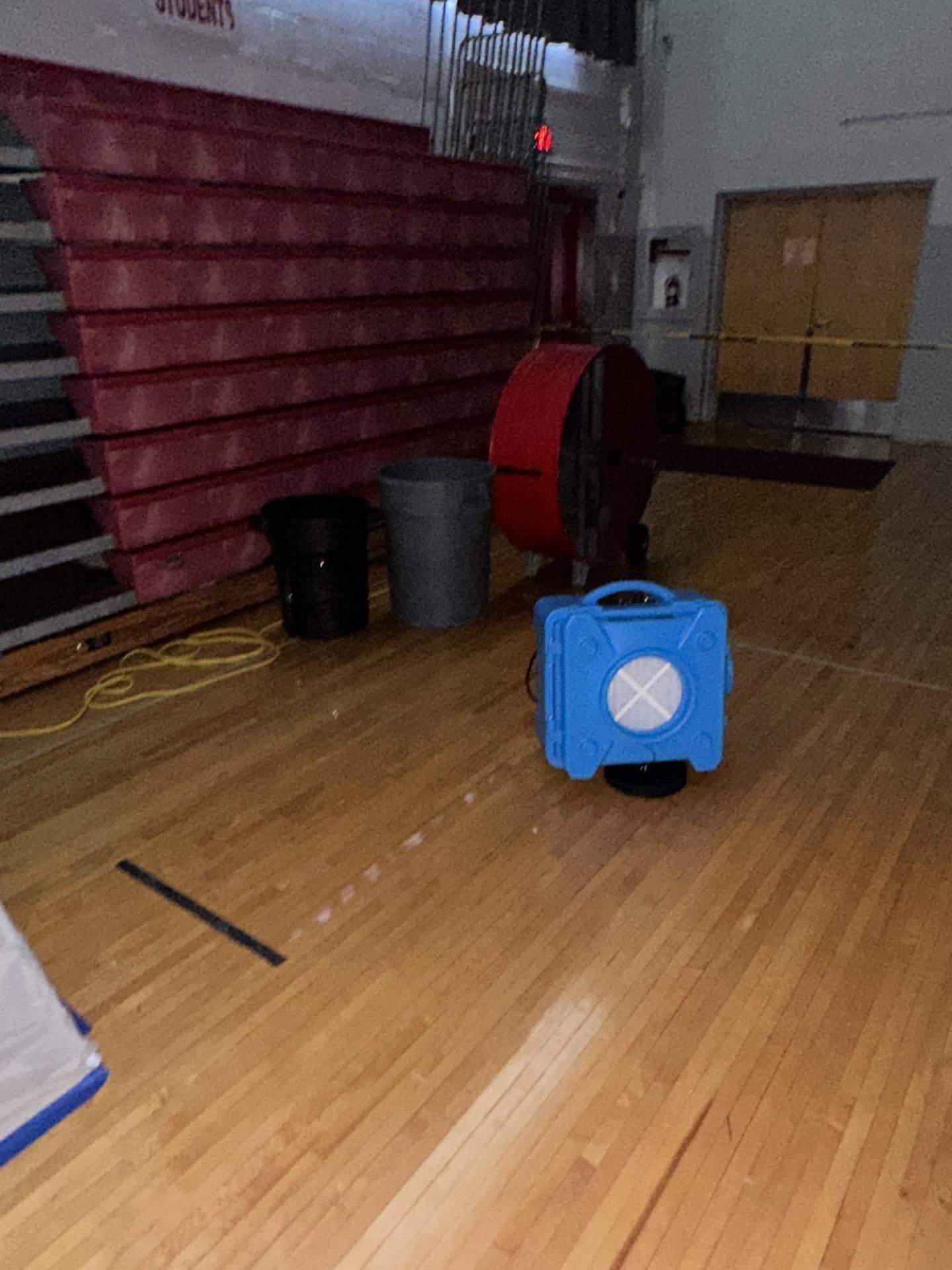 The customer experienced water damage in a gymnasium, requiring professional dryout and moisture mitigation services.
