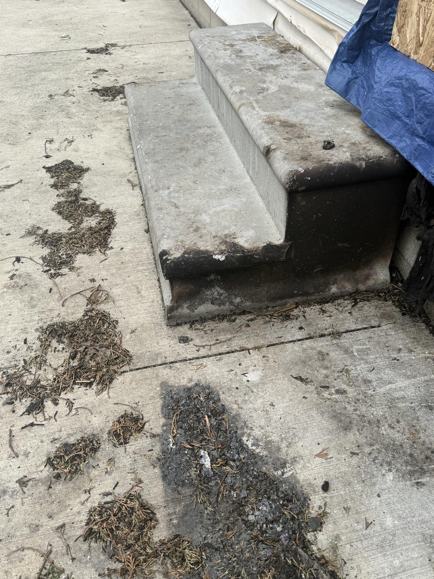 The customer required urgent assistance following a fire that caused significant damage to the exterior of their home. The property sustained severe charring to the structural walls, melted vinyl siding, and a heavy accumulation of soot and fire-related debris on the patio and surrounding outdoor living areas.
