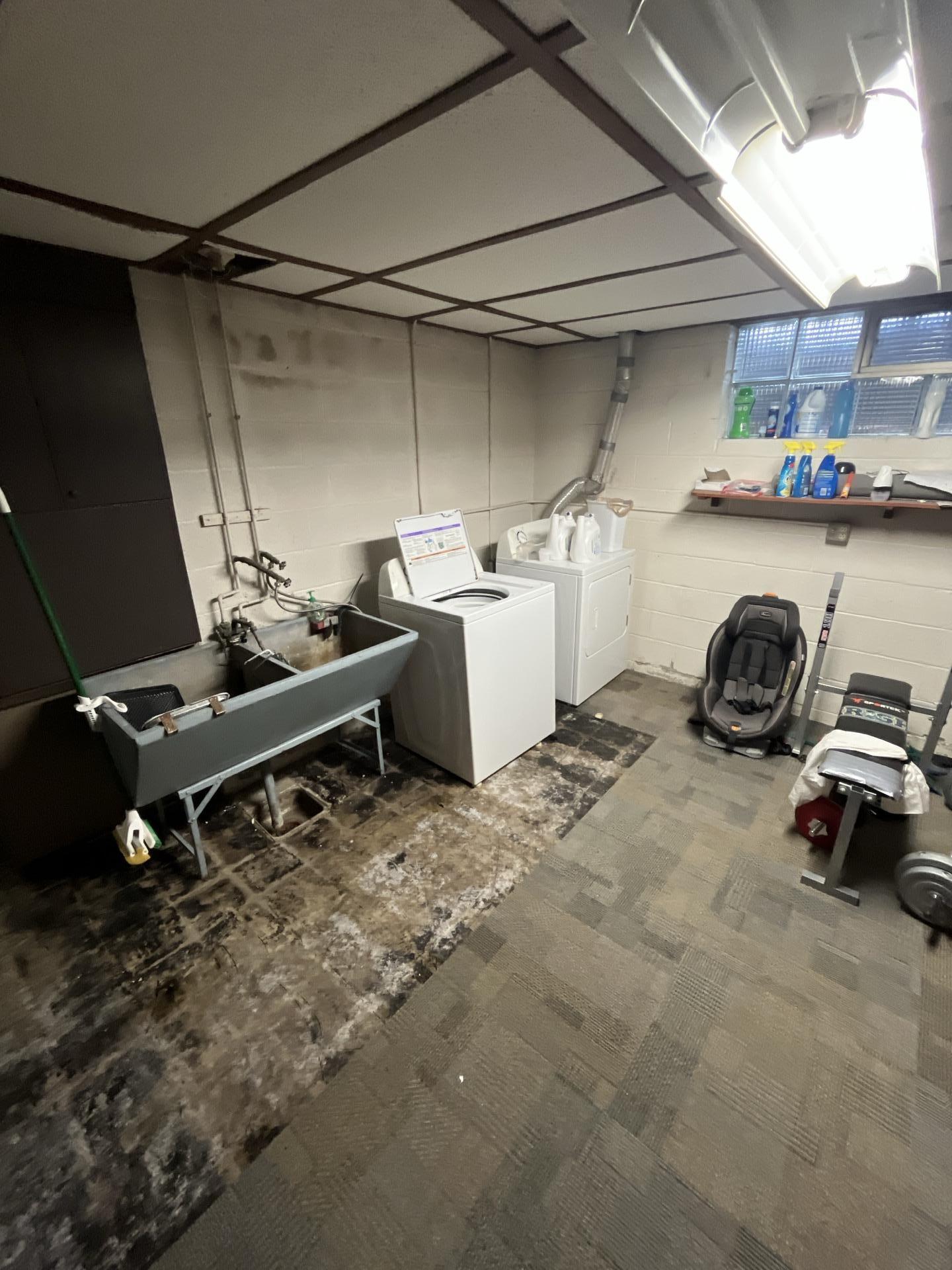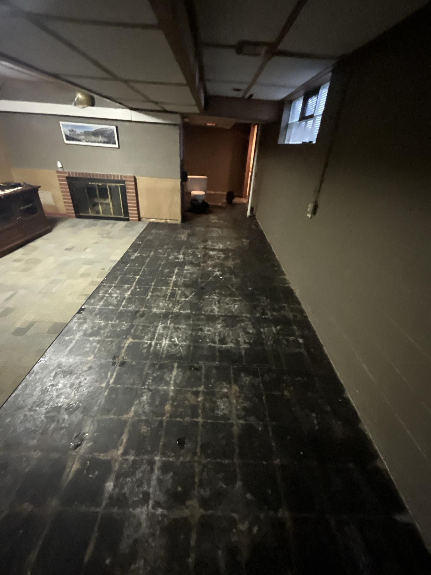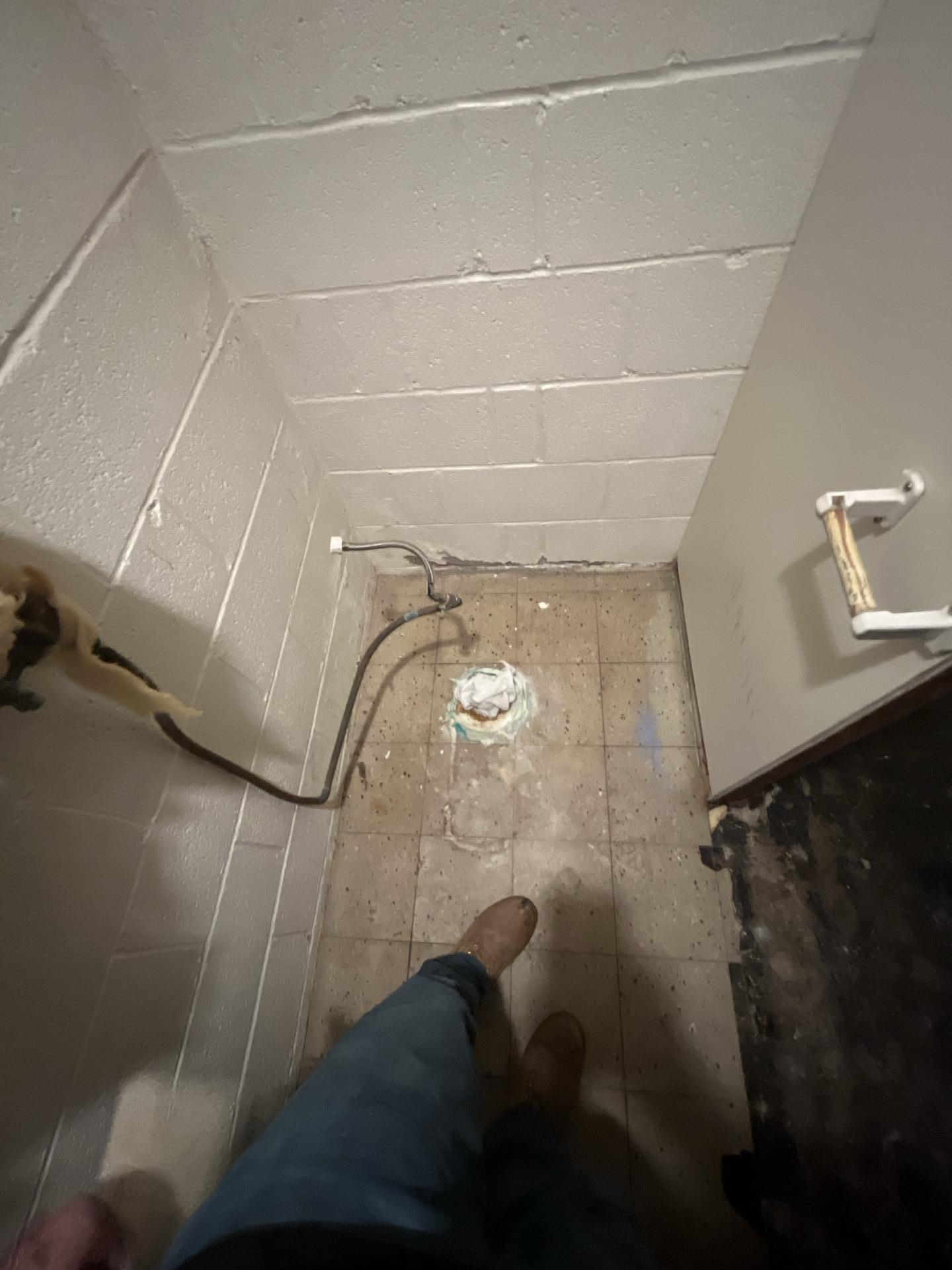 The customer experienced sewage damage in their bathroom, necessitating the replacement of the toilet, flooring, vanity, and bathroom door.