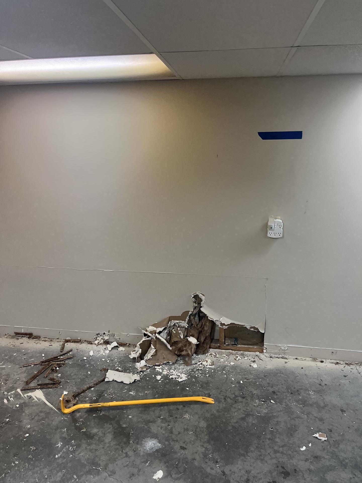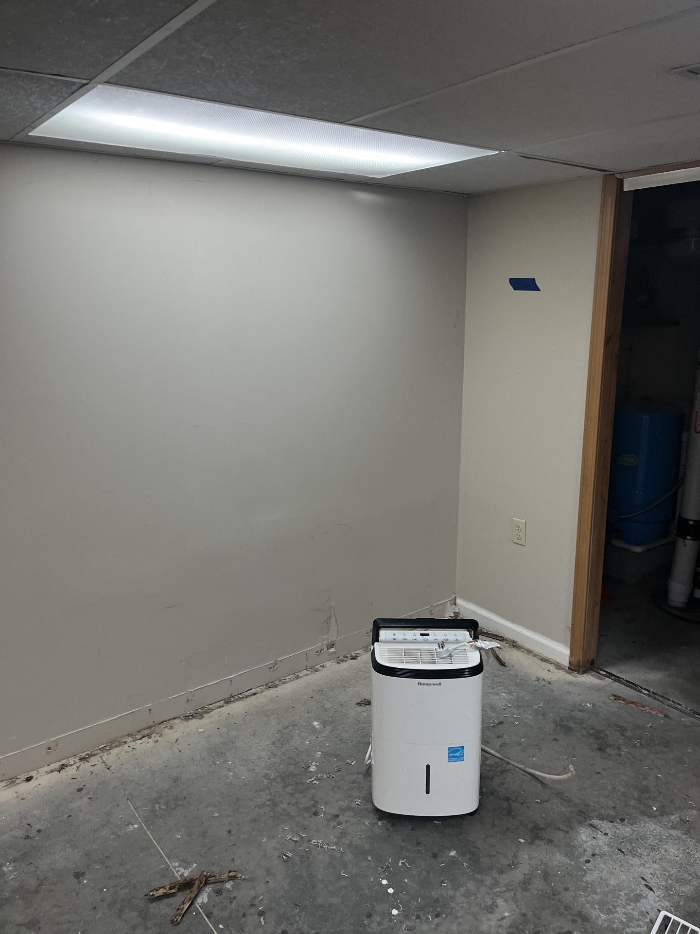 Our team took atmospheric and moisture readings to assess the extent of the damage, specifically evaluating the wet drywall. We marked affected areas on the walls to guide the homeowner on what needed to be removed. To address the humidity, we set up dehumidifiers, and an air scrubber was deployed to help abate the lingering smell.
