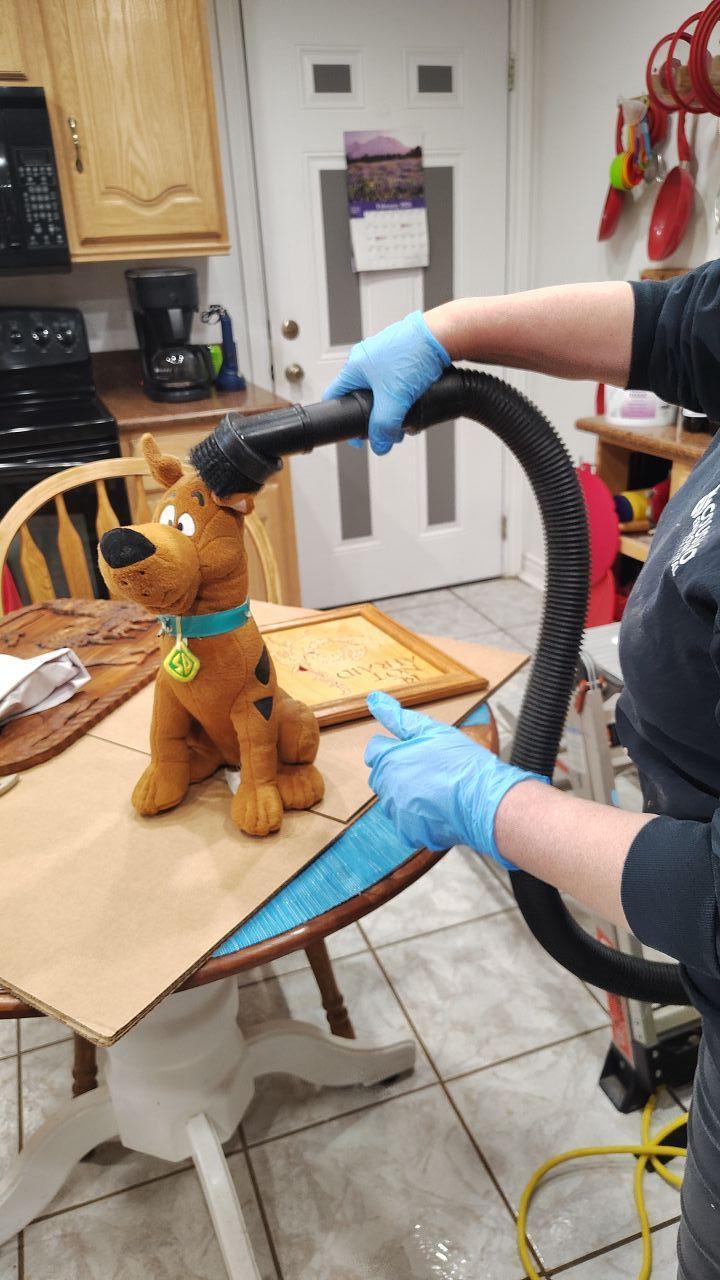 Provided comprehensive content restoration services, including meticulous cleaning of delicate items like intricate wooden carvings and plush toys such as a Scooby Doo stuffed animal, following fire damage. Our process involved specialized cleaning techniques to remove soot and smoke residue from various household goods.