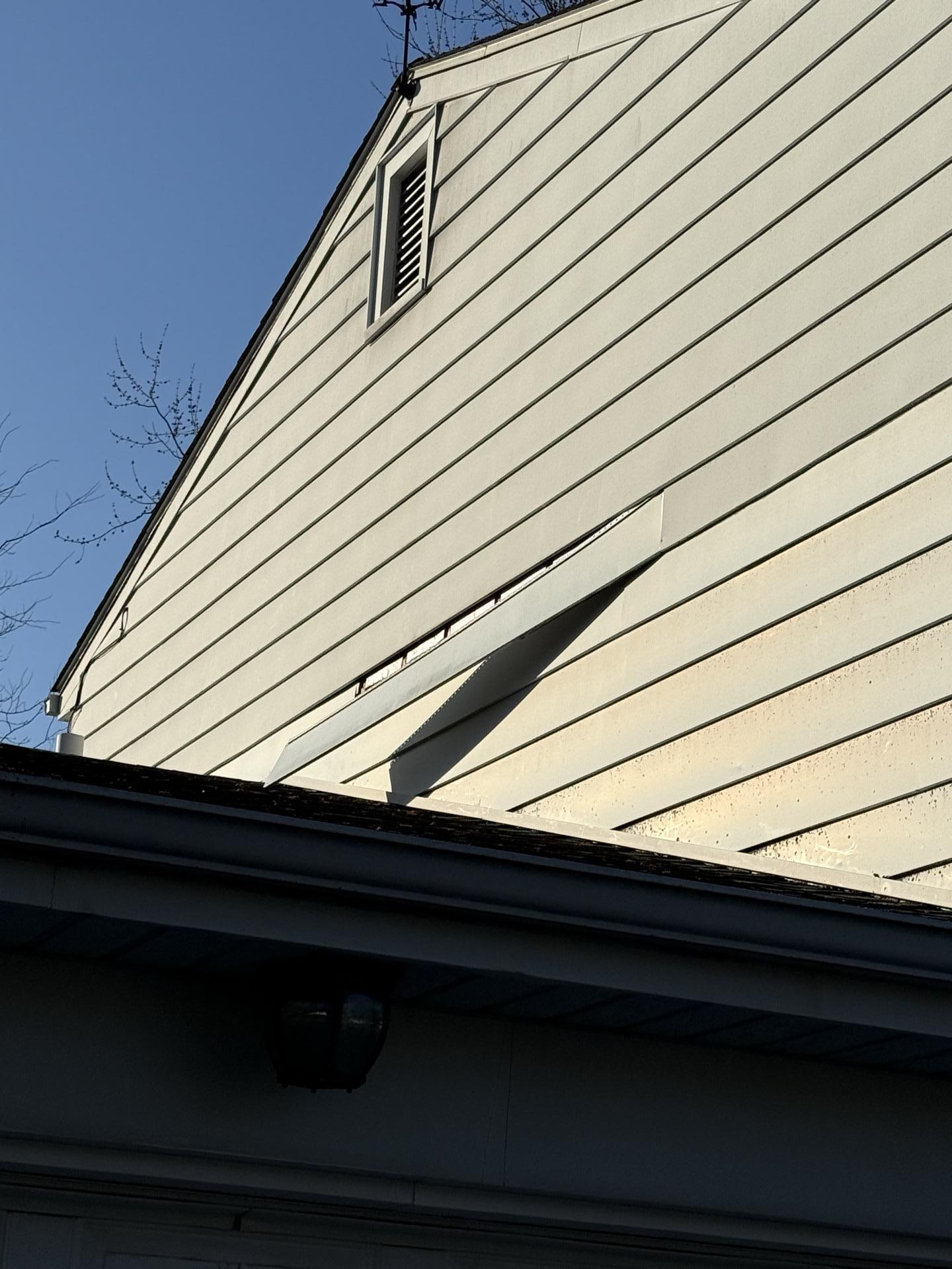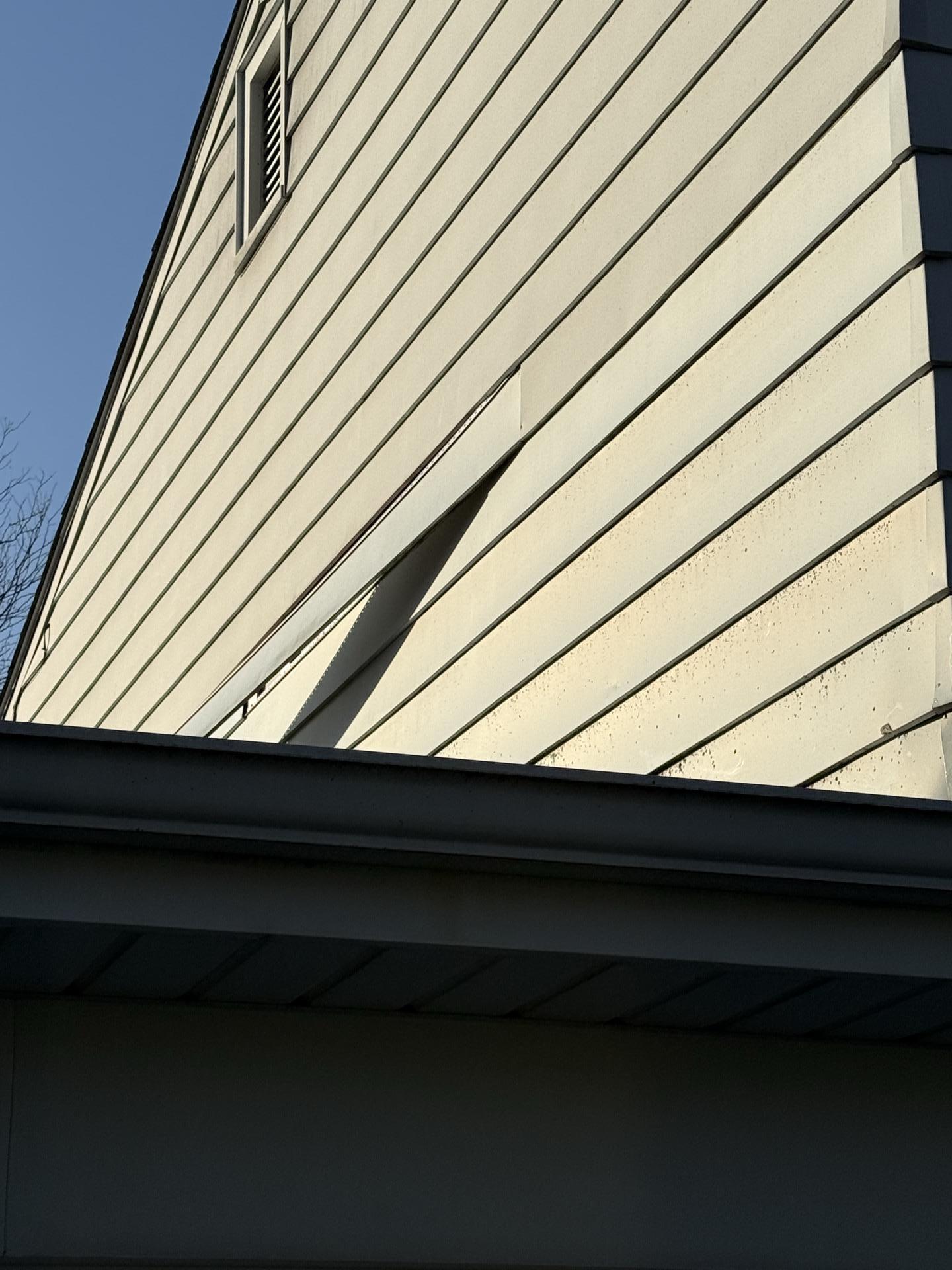 The customer reported that sections of siding were loosening and falling off their home following a recent hailstorm. Upon inspection, it was evident that the impact from large hailstones had cracked, dented, and weakened multiple siding panels, compromising their ability to stay securely fastened. In several areas, the force of the storm had either broken the panels entirely or loosened the fasteners, causing pieces to detach and expose the underlying structure.