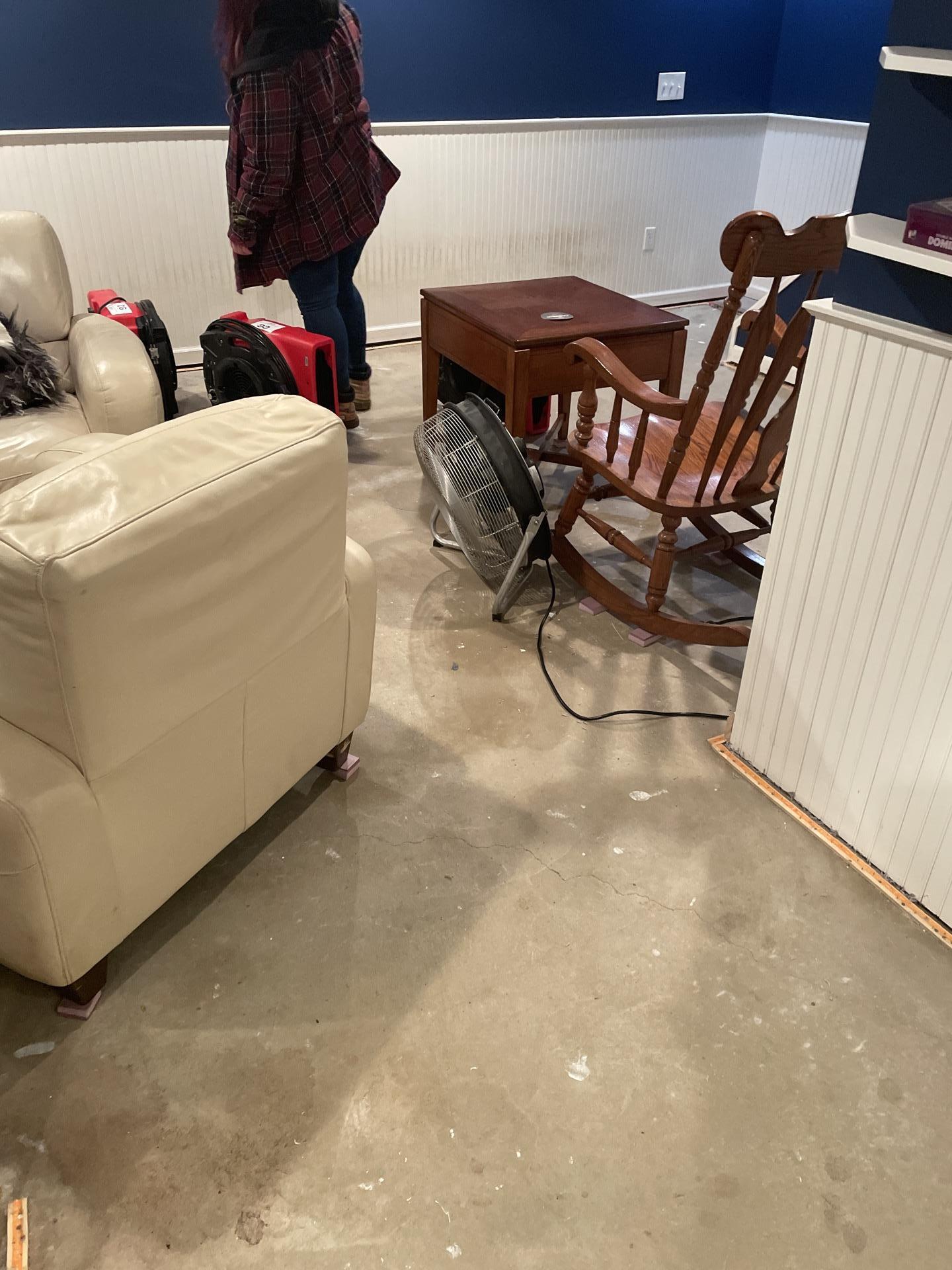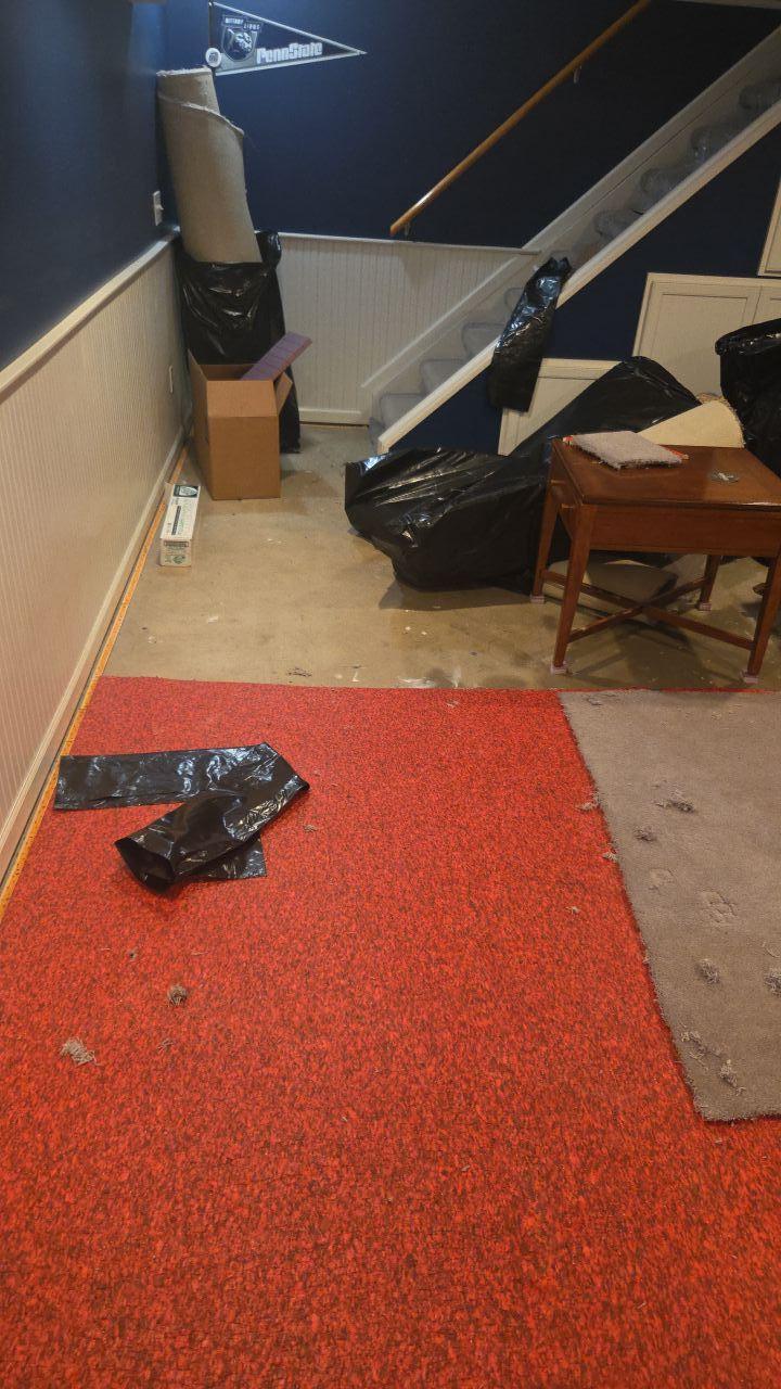 The customer contacted us to address a water intrusion issue in their basement that left the carpeting and padding saturated. They required professional moisture assessment and mitigation to prevent mold growth and structural damage to the surrounding walls and stairs.