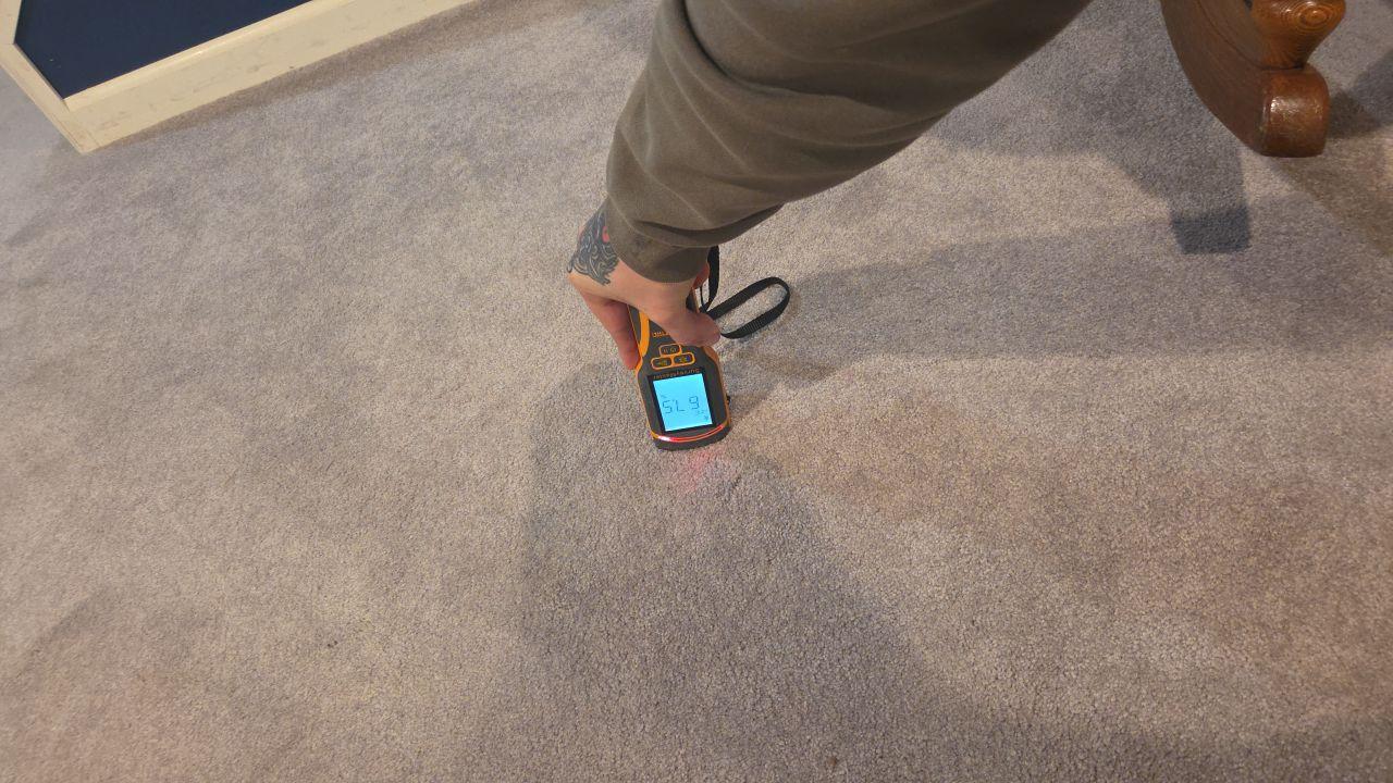 Cousino Restoration performed a comprehensive water mitigation process. We began by taking atmospheric and moisture readings to identify affected areas. We removed the wet carpet and padding from both the main floor and the stairs, as well as the baseboards near the source of the leak. To protect the customer's belongings, we elevated furniture on protective blocks. Finally, we deployed professional drying equipment, applied an antimicrobial treatment to prevent bacterial growth, and performed a thorough cleaning of the site.