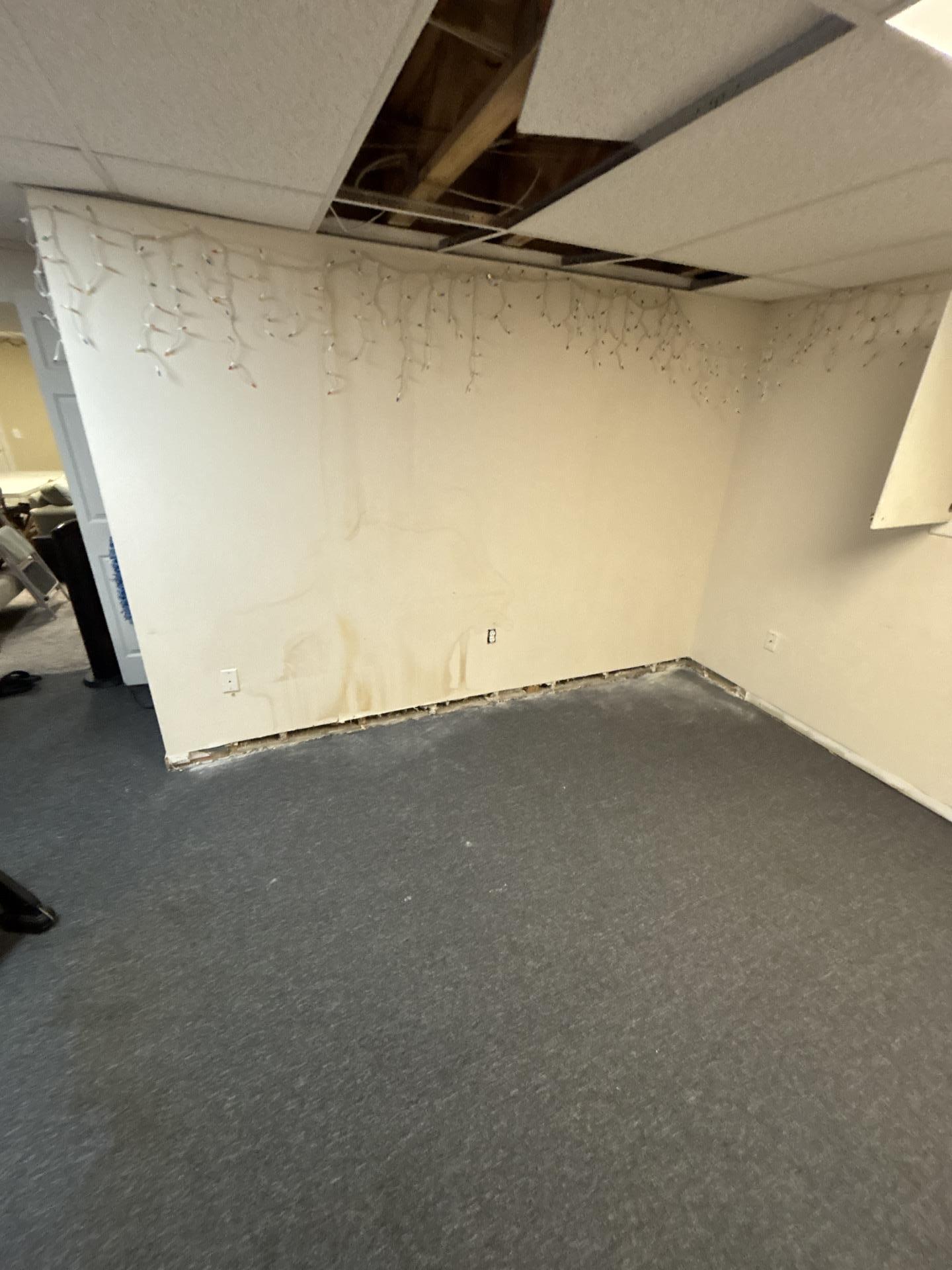 The customer contacted us to address severe water damage that had compromised their kitchen and basement areas. Moisture saturation had led to visible staining and mold growth on the drywall, while the glued-down carpet and cabinetry were contaminated, necessitating professional intervention to prevent further structural decay and health risks.